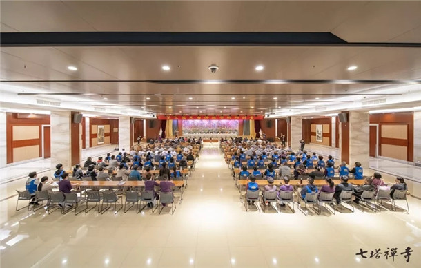 金黎萍女士在致辞中高度评价了七塔禅寺在硬件建设、文化建设、僧才培养、交流交往、社会公益等方面取得的显著成绩,为宁波佛教的健康发展作出了积极贡献,且对七塔禅寺在新时代的发展提出三点建议:一是高举爱国爱教旗帜,坚持宗教中国化方向。爱国爱教是佛教的优良传统,它既符合佛教的教义教理,也是佛教弘法利生、健康发展的重要保证。希望我市佛教界要高举爱国爱教旗帜,拥护党的领导,坚持佛教中国化方向,做到“政治上认同,文化上融合,社会上适应”,要以社会主义核心价值观为引领,深入挖掘教义教规中有利于社会和谐、时代进步、文明健康的内容,引导广大信众热爱祖国、热爱人民,维护中华民族大团结,为社会和谐、经济发展、文化繁荣贡献力量。二是要加强佛教文化建设,树立佛教良好形象。宁波佛教资源丰富,佛教文化底蕴深厚。天台宗是一个具有悠久传承的佛教宗派,其教义学说及历代高僧的思想不仅是佛教界的精神财富,也是佛教界相互交流的共同主题,更是佛教文化建设的重要内容。要用中华优秀传统文化和社会主义核心价值观为引领,加强佛教文化建设。要整合学界、教界研究资源,整理经典,深入研究佛教文化,促进佛教在新时代健康发展。三是要发挥佛教优势,主动服务大局。佛教界要充分发挥独特优势,继承和谐理念,践行“人间佛教”思想,发扬庄严国土、利乐有情、服务社会、造福人群的优良传统,传递正能量,汇聚向善的力量。要充分利用东南佛国这个得天独厚的优势,丰富宁波佛教文化内涵,传播宁波声音,讲好宁波故事,引导广大信众积极投身宁波改革发展的生动实践,在促进宁波经济发展、社会和谐、文化繁荣中,发挥积极作用,为名城名都”建设做出应有贡献。
