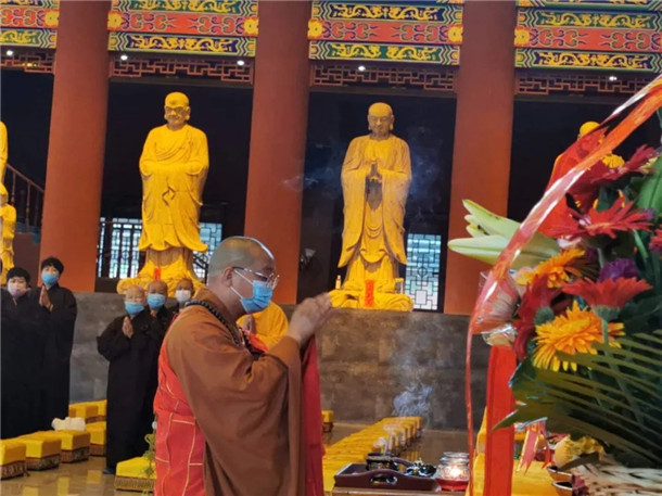 奠基法会由泰安市佛教协会会长、白马禅寺住持大悲法师等三位法师共同主法。主法法师、功德主依次拈香礼佛,现场僧众、居士虔诚念诵真言。法师手持杨枝净水,绕场一周进行洒净祈福活动,祈愿诸佛菩萨加持,龙天护佑,使道场建设顺利,道场慧灯永续,常转无上法轮。