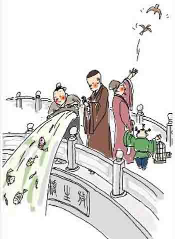 辨析:试想有初学佛子为求功德或为求现实的种种利益而放生,兴冲冲地告诉你,我今天放生了,放了某某元,救了某某条鱼,某些人却来一句:你为了放生而放生意义不大,或者你这样非出于慈悲心放生功德很小,或者其他什么退失别人放生之心的言论,若是信心不坚者,足以让一腔放生热血就此熄灭,再不肯放生,或者减少了放生的次数和数量,那些批评者可否想过那些因为你导致本该获救的生灵惨遭杀戮。