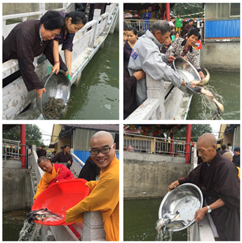 法师为放生物命做皈依、念大悲咒,洒净等,令它们种下解脱的菩提种子