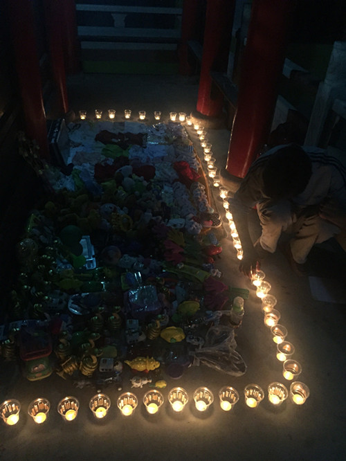 信众们共同点灯祈福,愿灯光照亮无明黑暗,灭除一切众生愚昧, 从此得到智慧的明灯。