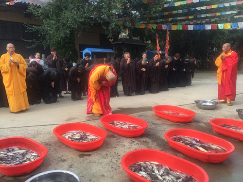 2016年10月19日观音菩萨出家日放生法会圆满举行。法会由果智法师主法,法会圆满殊胜。法会期间果智师领众念诵放生仪轨,为放生物命加持、皈依三宝。愿众生早开智慧,离苦得乐,精进修行,往生莲邦。