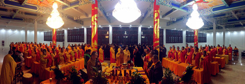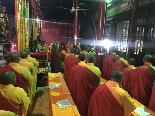 适逢农历十月初一药师佛圣诞,护国龙王寺启建水陆法会圆满举行。在此法会期间的七日七夜里,由130余位大德法师引领四众广设内坛、大坛、华严坛、诸经坛等七大坛场,进行诵经、授戒、持名、礼忏、请圣、斋天、放生、上供、普佛以及焰口等各种佛事活动,籍此殊胜因缘,仰仗诸佛菩萨本愿功德,为法会的功德主们及其眷属祈福消灾、报恩超度,为法界一切众生解除疾苦、使具足诸根、趋入解脱,并回向世界和平、国泰民安!