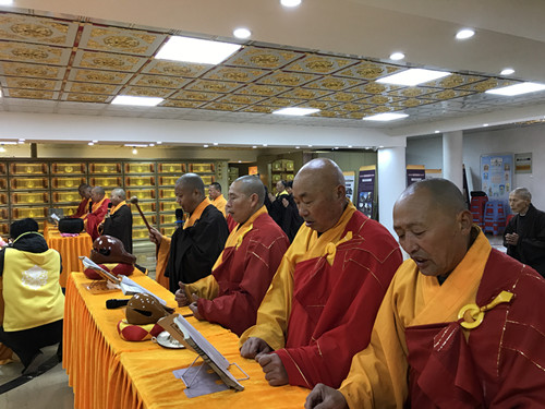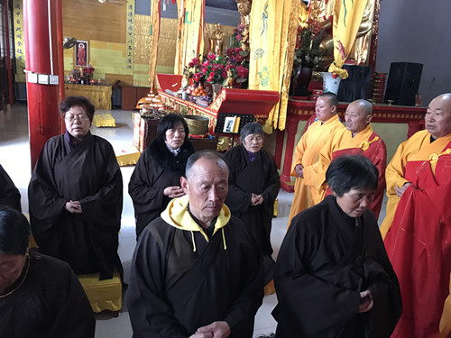 寺院法师领众善信共同念诵《慈悲梁皇宝忏》
