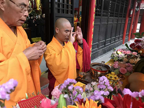 寺院清晨举行斋天法会